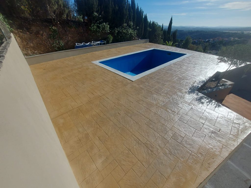 Este tipo de aplicación de hormigón impreso para piscinas ha recibido excelentes críticas por parte de nuestros clientes, lo que siempre es motivo de satisfacción. Es una obra que se destaca por su calidad, su atractivo visual y su asequibilidad. Colocar pavimento impreso alrededor de una piscina es una inversión que siempre se valora positivamente, ya que los resultados son altamente personalizados y el cliente tiene la última palabra en cuanto a los moldes y colores utilizados. Contamos con una vasta experiencia en diseño y hemos completado numerosas obras en diferentes regiones, lo que nos permite ofrecer orientación experta en la elección del diseño más adecuado.
